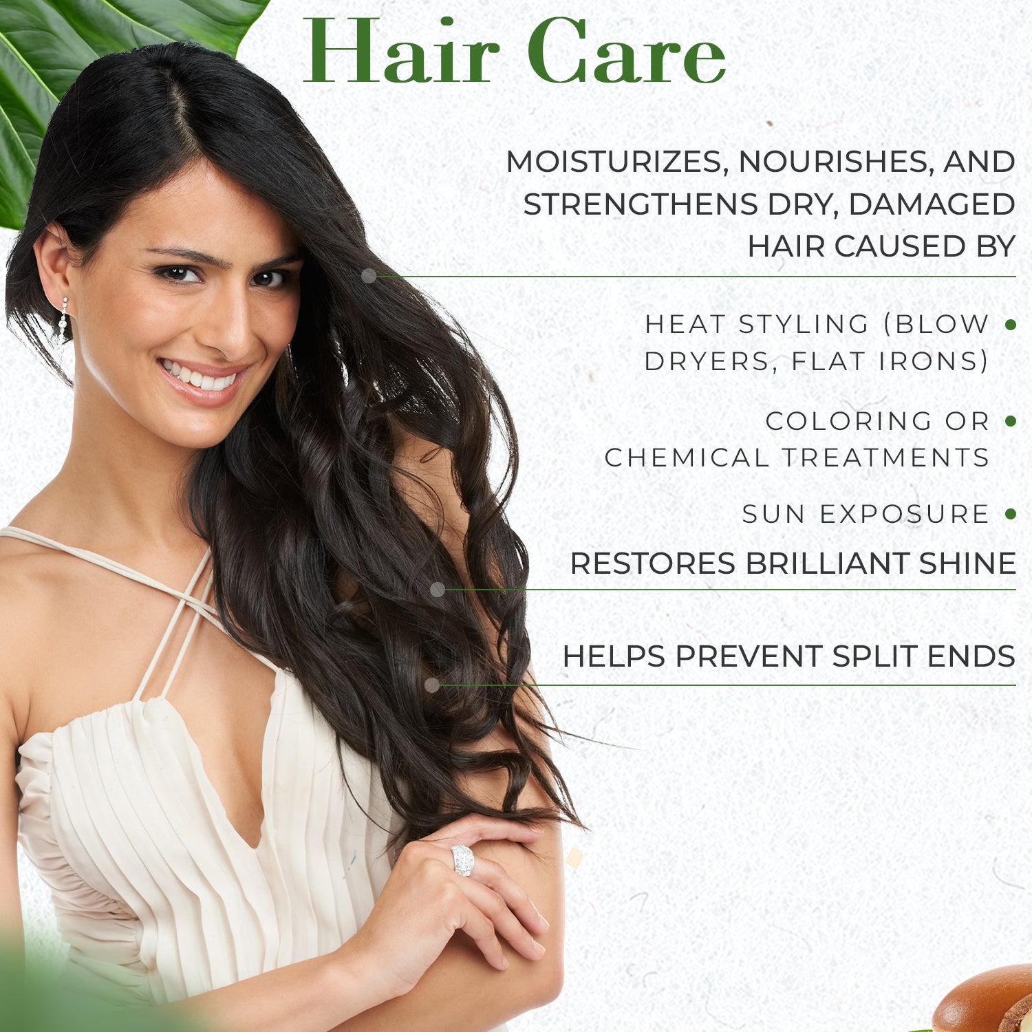 - Hair Repair & Shine – Smooths frizz, strengthens strands & promotes healthy growth.