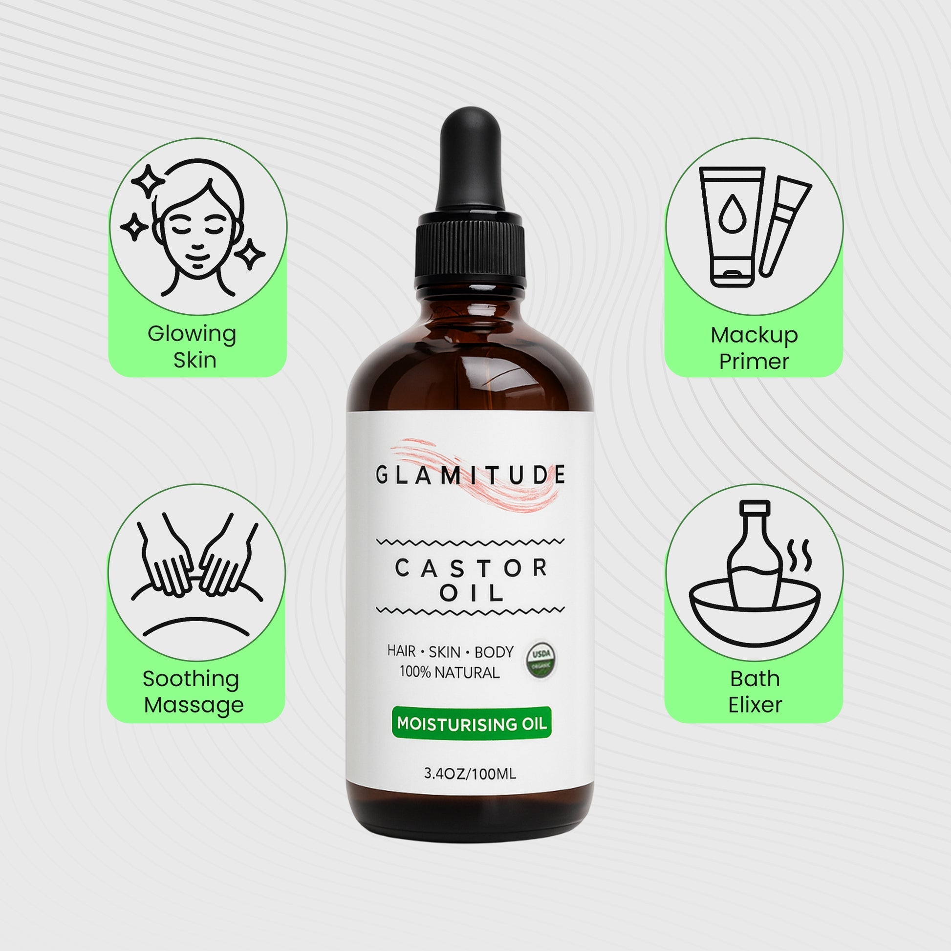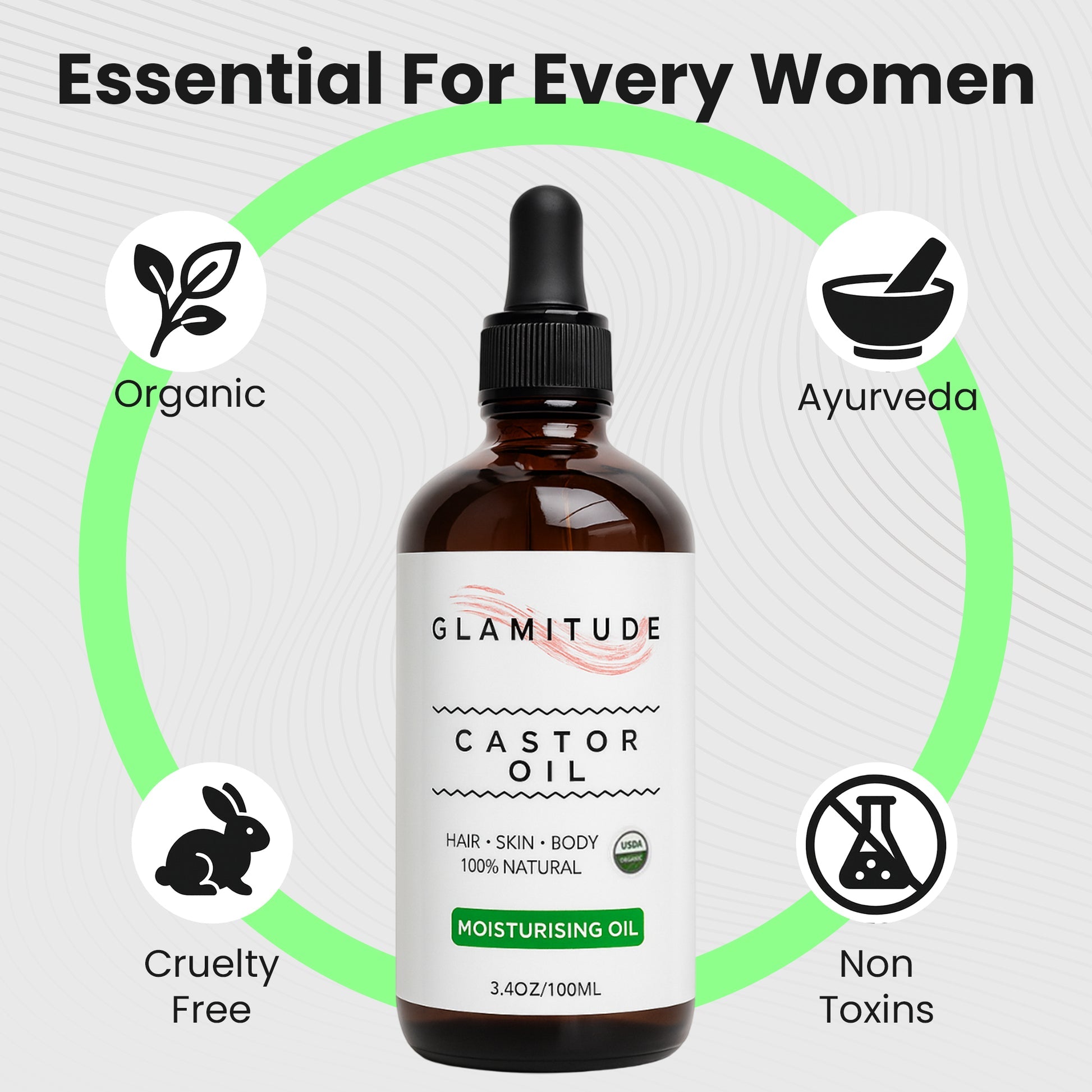 - Moisturizes Skin Naturally: With its deep moisturizing properties, castor oil penetrates the skin to hydrate, soothe, and reduce the appearance of fine lines and wrinkles. Ideal for dry, sensitive, or acne-prone skin.